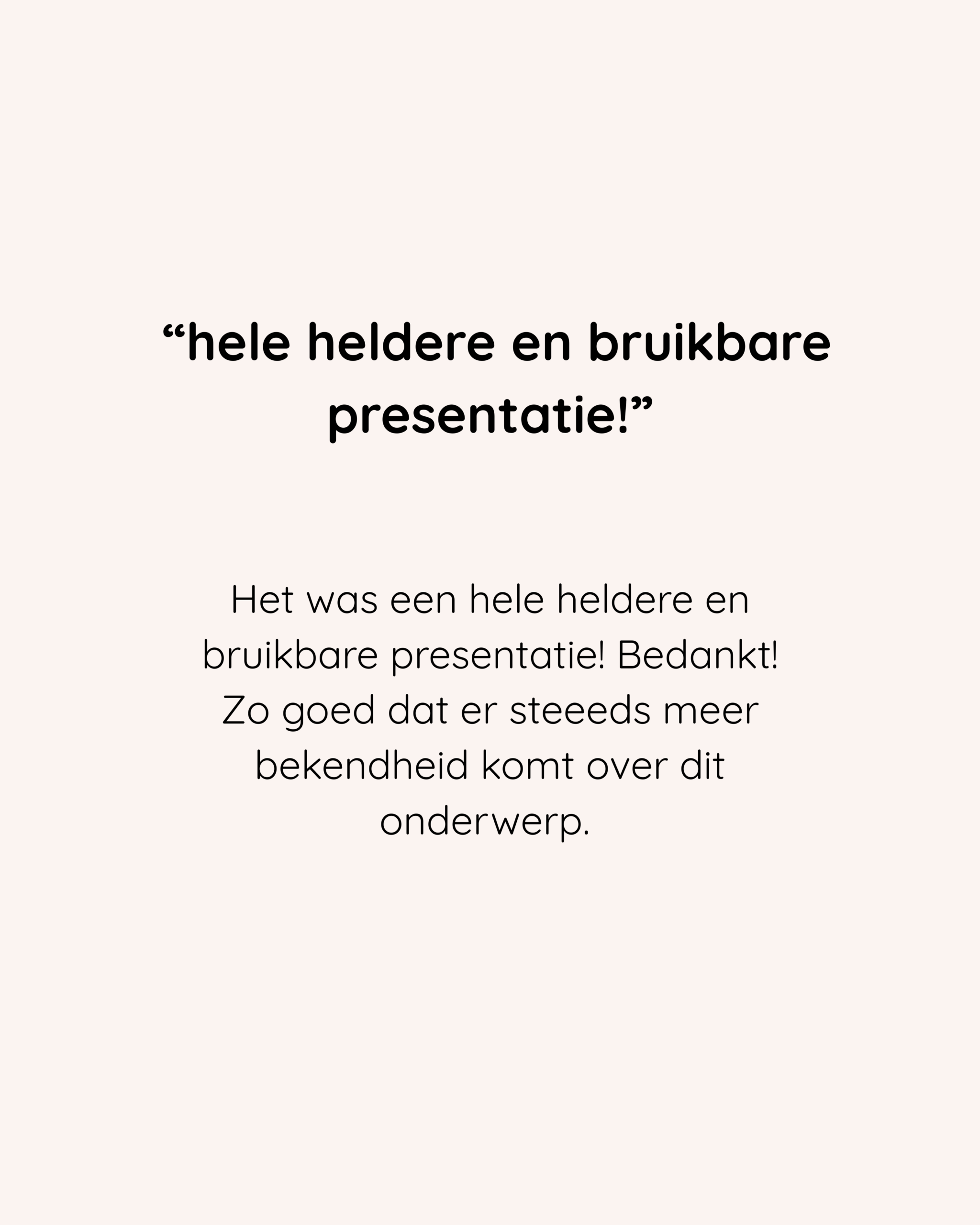 Je ontvangt altijd een factuur. Ook ontvang je na afloop een certificaat van deelname. Mocht je nog andere zaken nodig hebben, laat het dan weten!