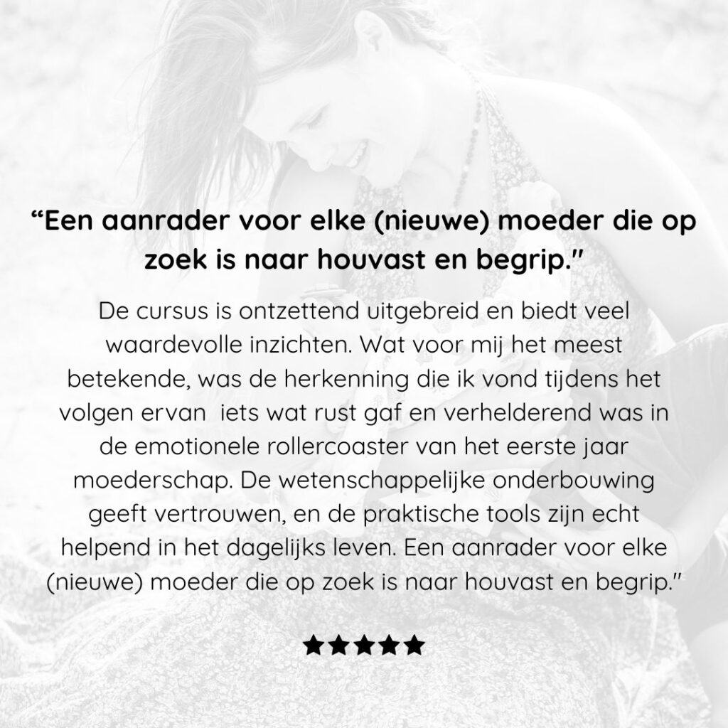 In deze cursus leer je jezelf als vrouw in het moederschap beter kennen, je leert omgaan met (hevige) emoties en hoe je meer balans in jezelf, zekerheid en plezier uit het moederschap kan halen.